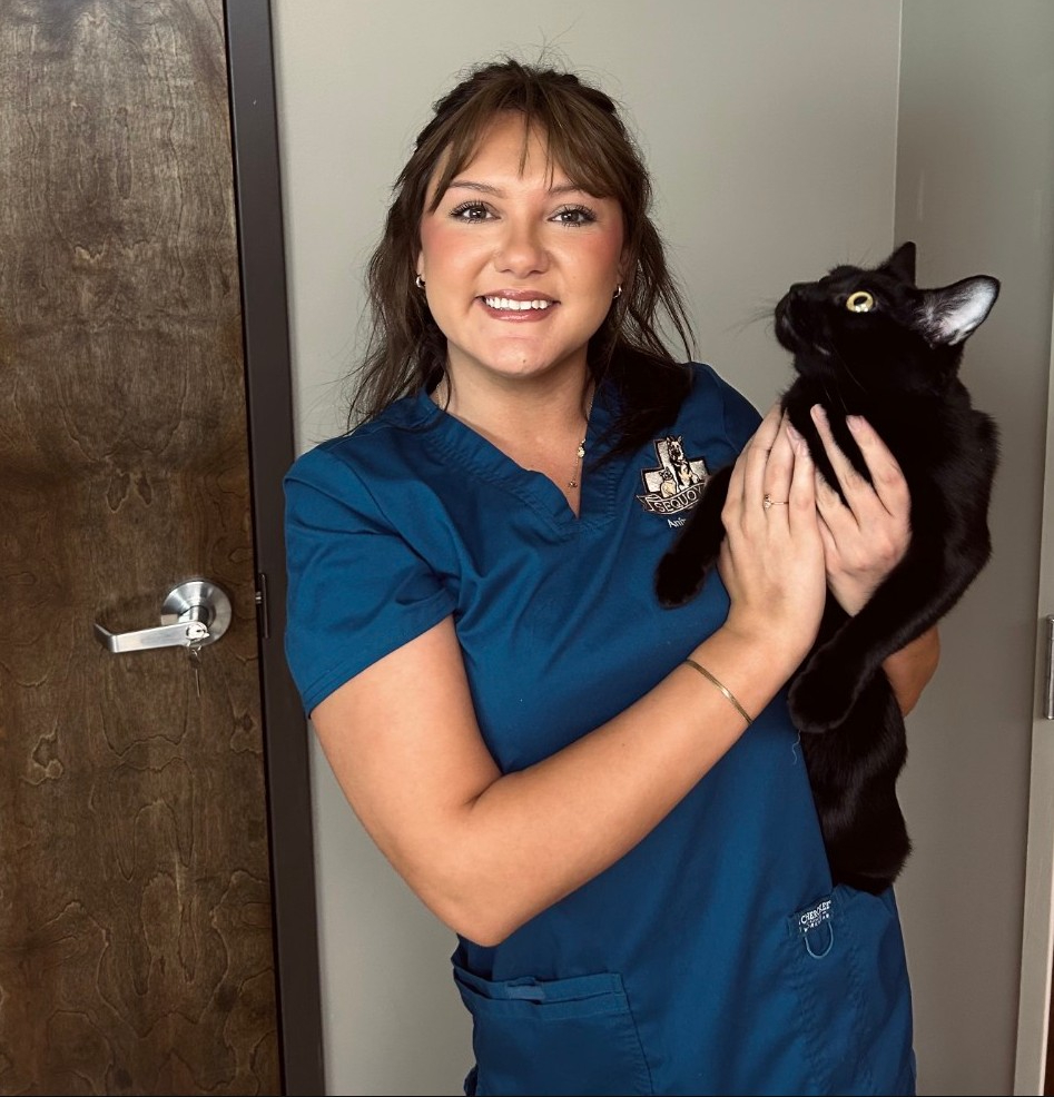 More recently, Kaylee transitioned into the role of veterinary assistant. She now spends her time working in exam rooms, educating clients, and assisting during surgeries. Her passion for animals shines through in everything she does, and she’s always ready to lend a helping hand wherever it’s needed.